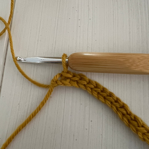 Leave approx 20cm then start ch90. Yarn over hook and insert into 3rd chain from hook, pull yarn up (you now have 3 stitches on the hook). Yarn over pull through 2 (You now have 2 stitch on hook) Yarn over and pull up, (you now have 4 st on hook) pull through all 4 stitches, ch 1 and insert hook into 4th chain from hook, slst, and slst back down remaining ch. until you reach the beginning.